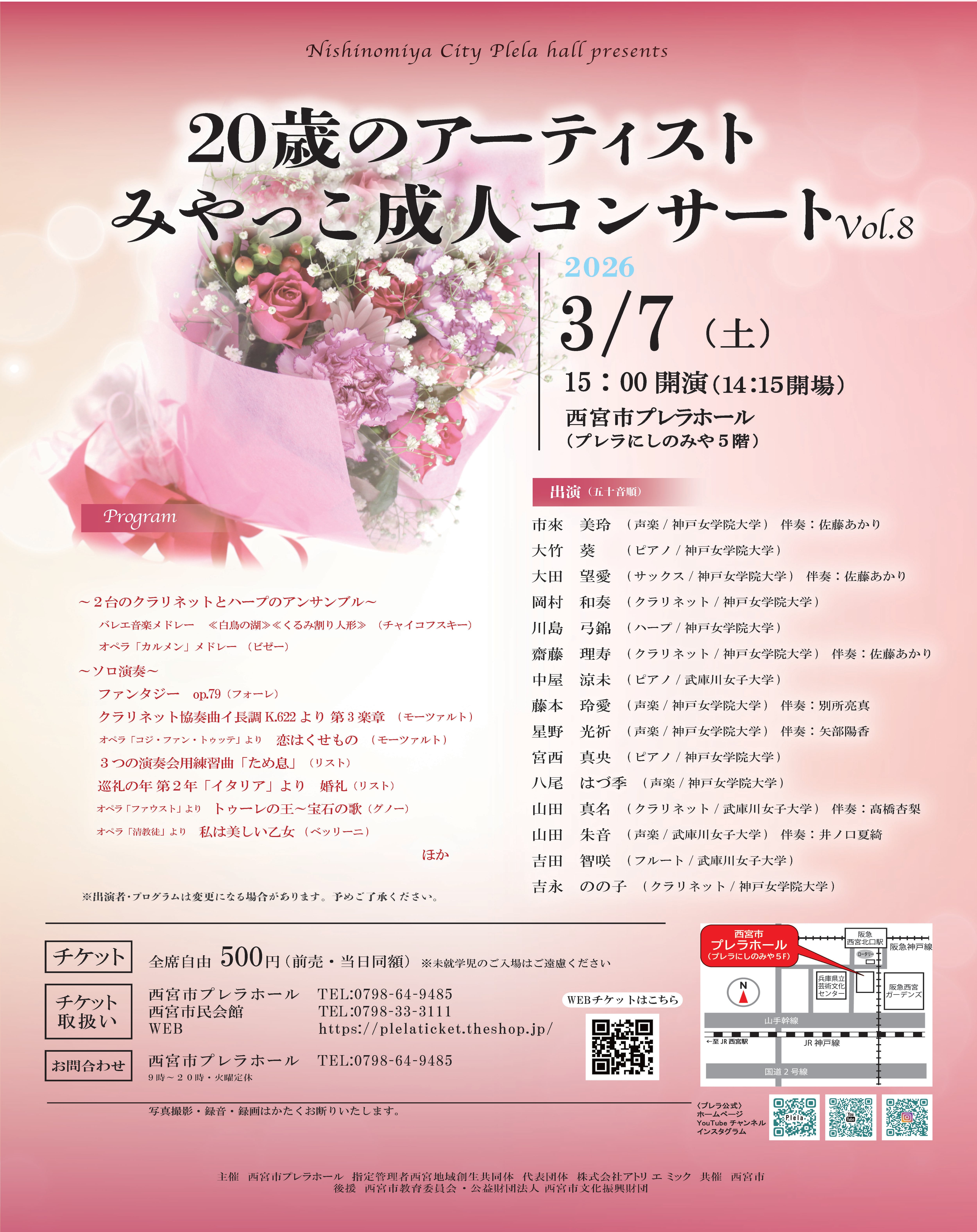 西宮にゆかりある20歳のアーティストたちがお贈りする、感動の成人コンサートVol.8。