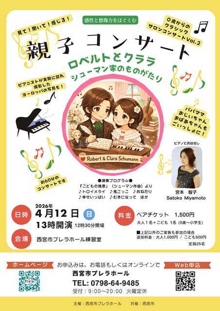 ピアニストが実際に訪れたヨーロッパの写真をみながら、目と耳で気軽にクラシックを楽しむ親子コンサート。